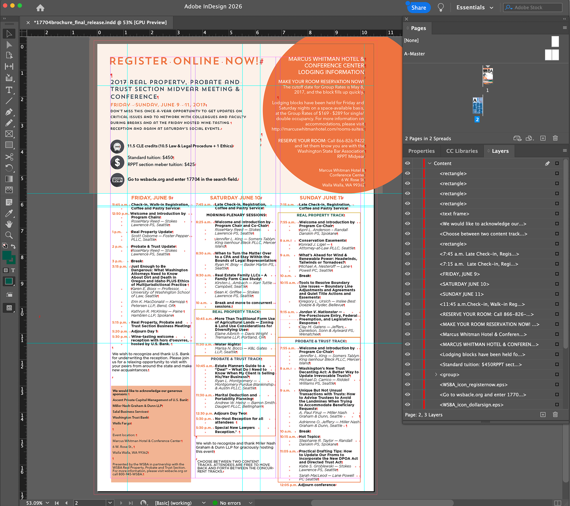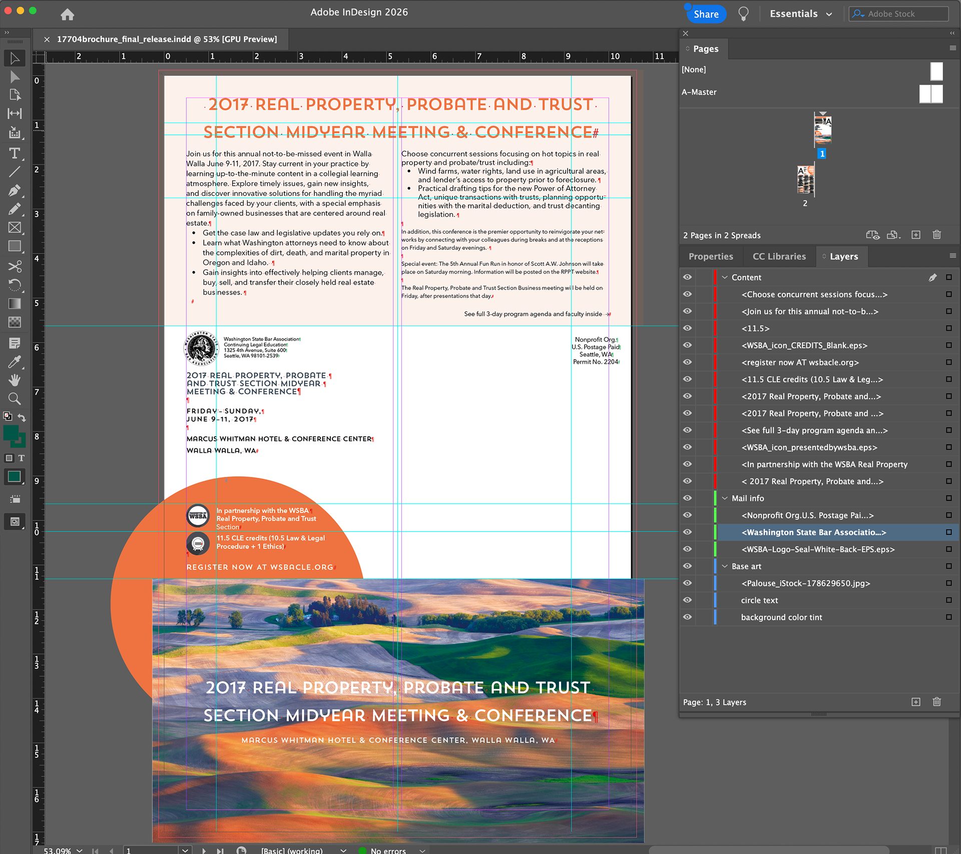 Files for a conference mailer for the Real Property, Probate and Trust section at the WSBA.