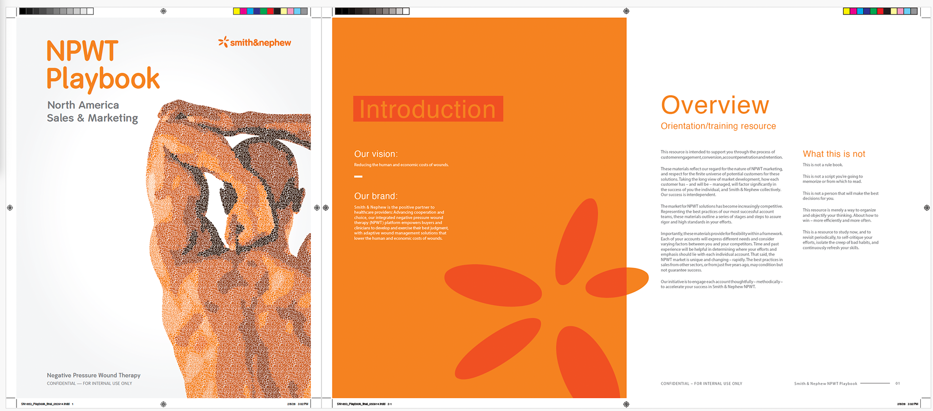 Partnering with Turnstyle, I helped prepare the mechanical files for this offset, perfect-bound 54-page playbook for Smith & Nephew, a global leader in wound care and orthopedic medical technologies.